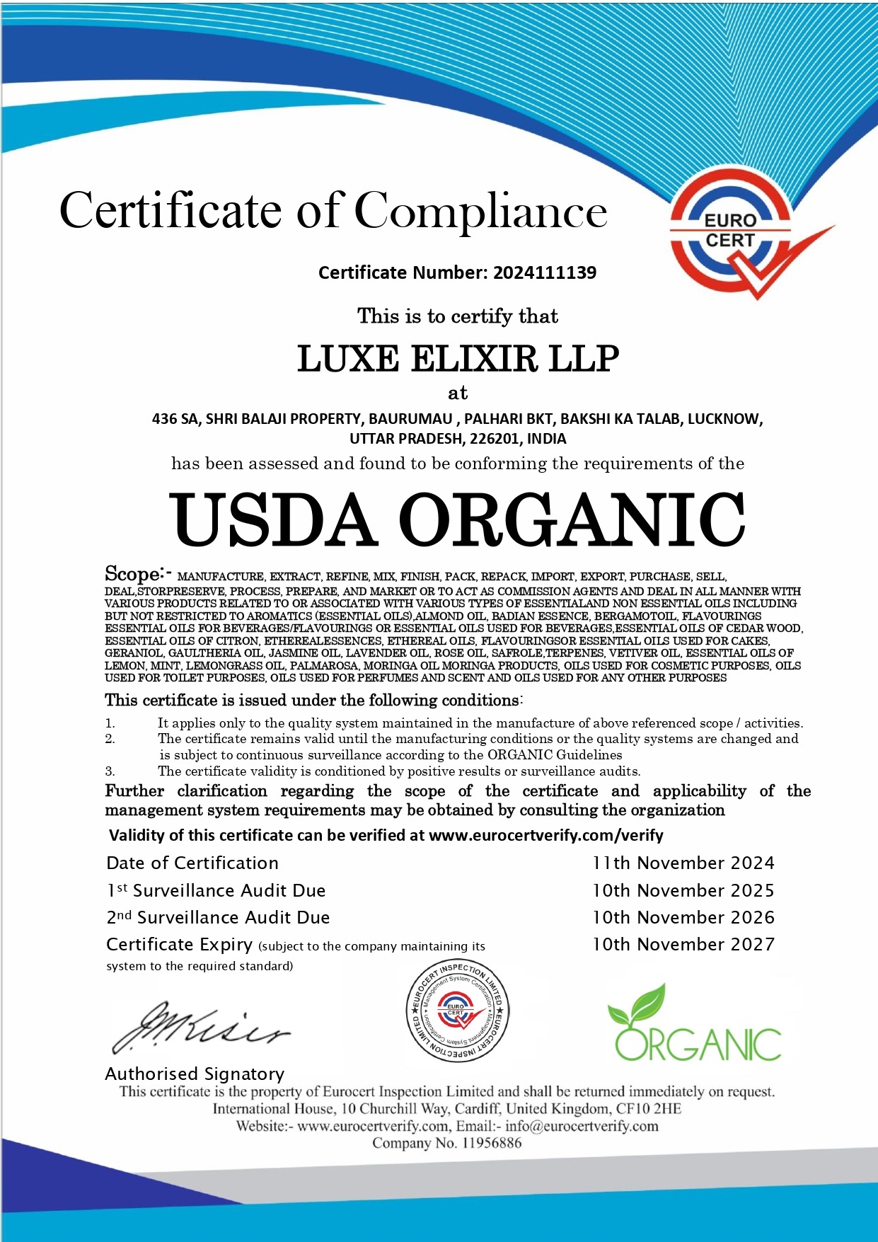Rooted in sustainability and a passion for wellness, Luxe Elixir merges the power of nature with the science of wellness to deliver organic yields that nurture your body and soul. As a proud homegrown company, we offer a range of essential oils and moringa-based products, all crafted with 100% organic ingredients sourced directly from our own farms. With over 100 acres of dedicated farmland, we have spent years perfecting our craft to ensure that we deliver the purity and potency of nature.